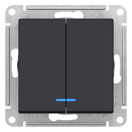 Выключатель двухклавишный Atlasdesign скрытой установки 10А с подсветкой (сх.5а) механизм карбон ATN001053 Systeme Electric