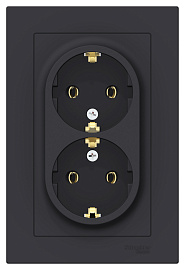 Розетка двойная Atlasdesign скрытой установки с заземлением 16А в сборе карбон ATN001024 Systeme Electric