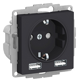 Розетка Atlasdesign скрытой установки 16А c 2 USB A+A, 5В/2,4А, 2х5В/1,2 А механизм карбон ATN001030 Systeme Electric