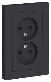 Розетка двойная Atlasdesign скрытой установки без заземления со шторками 16А в сборе карбон ATN001022 Systeme Electric