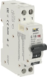 Выключатель автоматический дифференциального тока АВДТ 20А 1+N двухполюсный характеристика C 6кА 30мА AC ARMAT AR-B06S-1N-C20C030 IEK