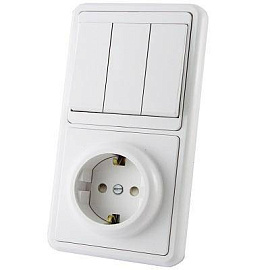 - Трёхклавишный выключатель позволяет управлять тремя источниками света из одной точки.