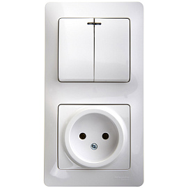 Блок GLOSSA скрытой установки Выключатель двухклавишный с подсветкой + Розетка в сборе белый GSL000173 Systeme Electric