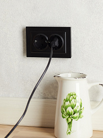Розетка 2-местная с заземлением с защитными шторками 16А в сборе РСш12-3-БрЧ черный BR-R24-16-K02-F BRITE IEK