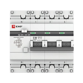 Выключатель автоматический дифференциального тока АД-32 50А (3P+N) четырехполюсный характеристика C 4,5kA 300мА селективный PROxima DA32-50-300S-4P-pro EKF