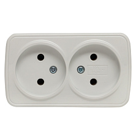 Розетка двойная Минск открытой установки без заземления без шторок 10А в сборе белый EGR10-102-10 EKF