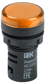 Лампа сигнальная желтая AD-22 DS светодиодная 230-240В для крепления на панели IP44 BLS10-ADDS-230-K05 IEK