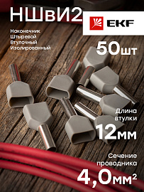 Наконечник НШВИ(2) 4.0-12 штыревой втулочный изолированный двойной (уп 50шт) EKF nhvi2-4.0-12 /10 уп/