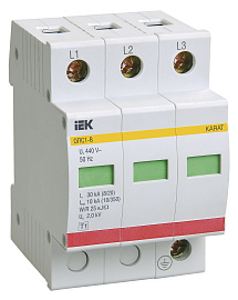 Ограничитель импульсных перенапряжений ОПС1-В 3Р In=30kA Un=400B Im=60kA (MOP20-3-B/MOP10-3-B) IEK