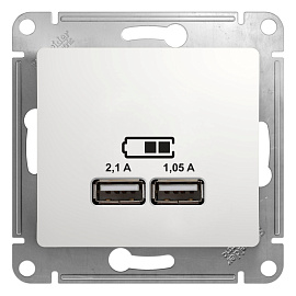 Розетка 2 USB GLOSSA скрытой установки A+A, 5В/2,1А, 2 х 5В/1,05А механизм белый GSL000133 Systeme Electric