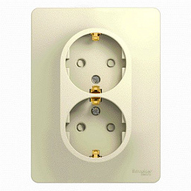 Розетка двойная GLOSSA скрытой установки с заземлением со шторками 16А в сборе бежевый GSL000226 Systeme Electric