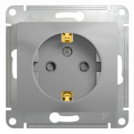 Розетка одинарная GLOSSA скрытой установки с заземлением со шторками 16А механизм алюминий GSL000345 Systeme Electric