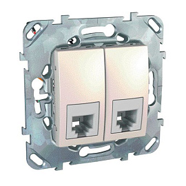 Розетка RJ11+RJ11 телефонная Unica скрытой установки 4 контакта механизм бежевый MGU5.9090.25ZD Schneider Electric