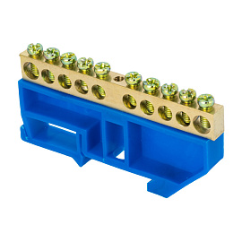 Шина "N" (ноль) 10 отверстий 6х9 мм на DIN-изоляторе (синий) латунь PROxima sn0-63-10-d-r EKF