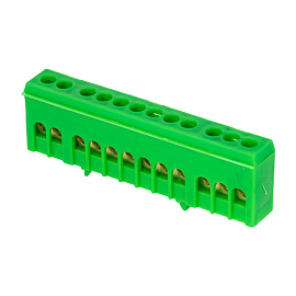 Шина "0" PE (6х9мм) 12 отверстий латунь зеленый изолированный корпус на DIN-рейку розничный стикер EKF PROxima