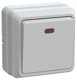 Выключатель одноклавишный ВС20-1-1-ОБ ОКТАВА открытой установки 10А с индикацией белый IP20 EVO11-K01-10-DC IEK