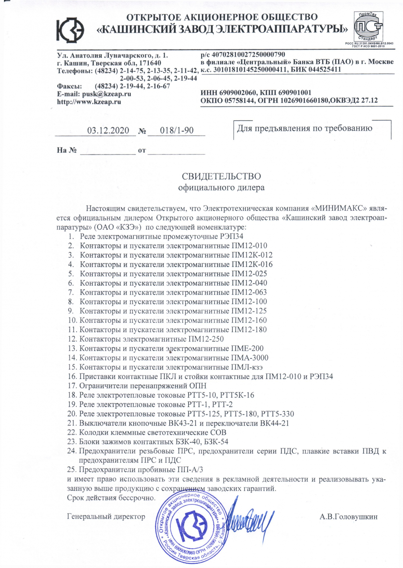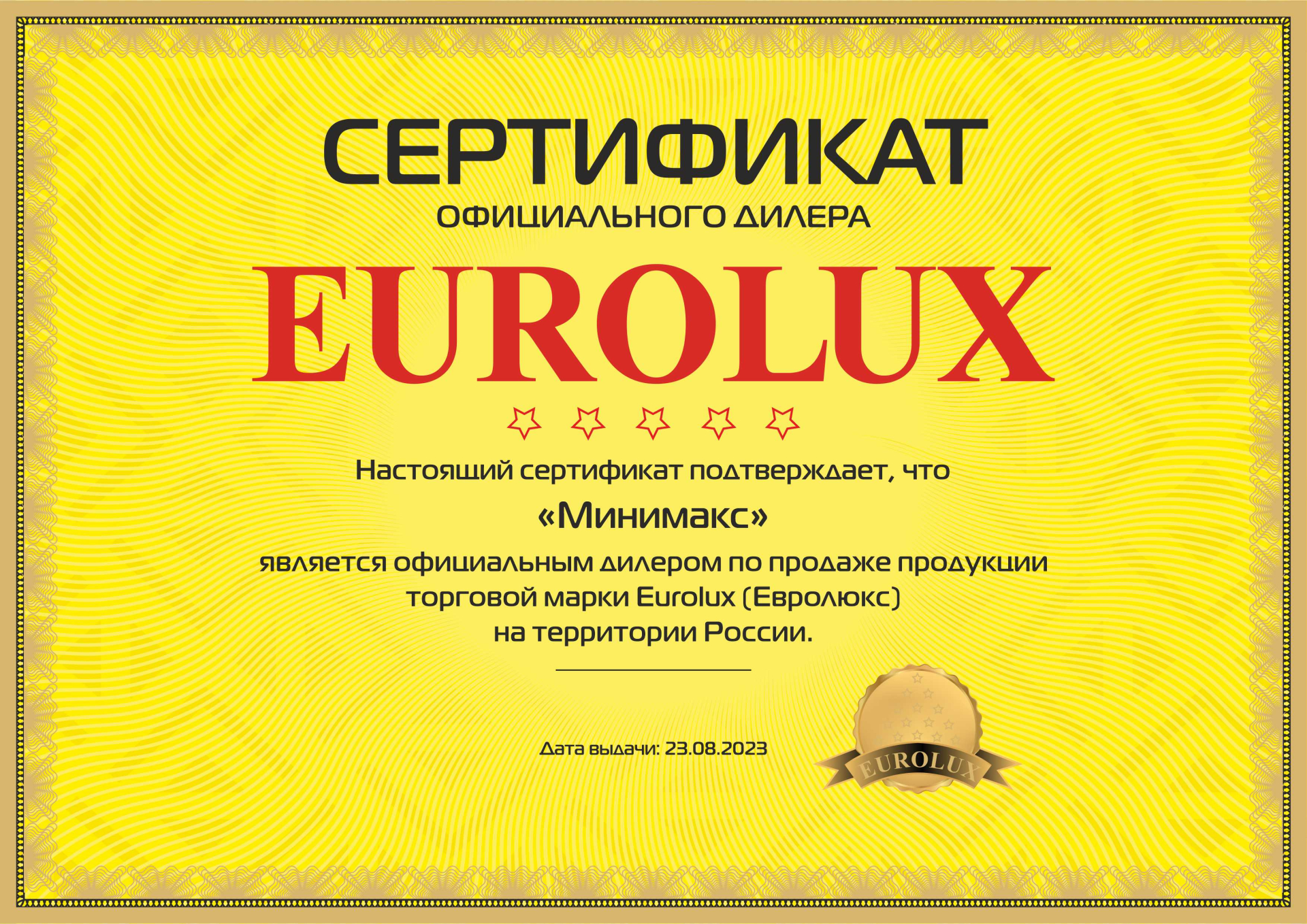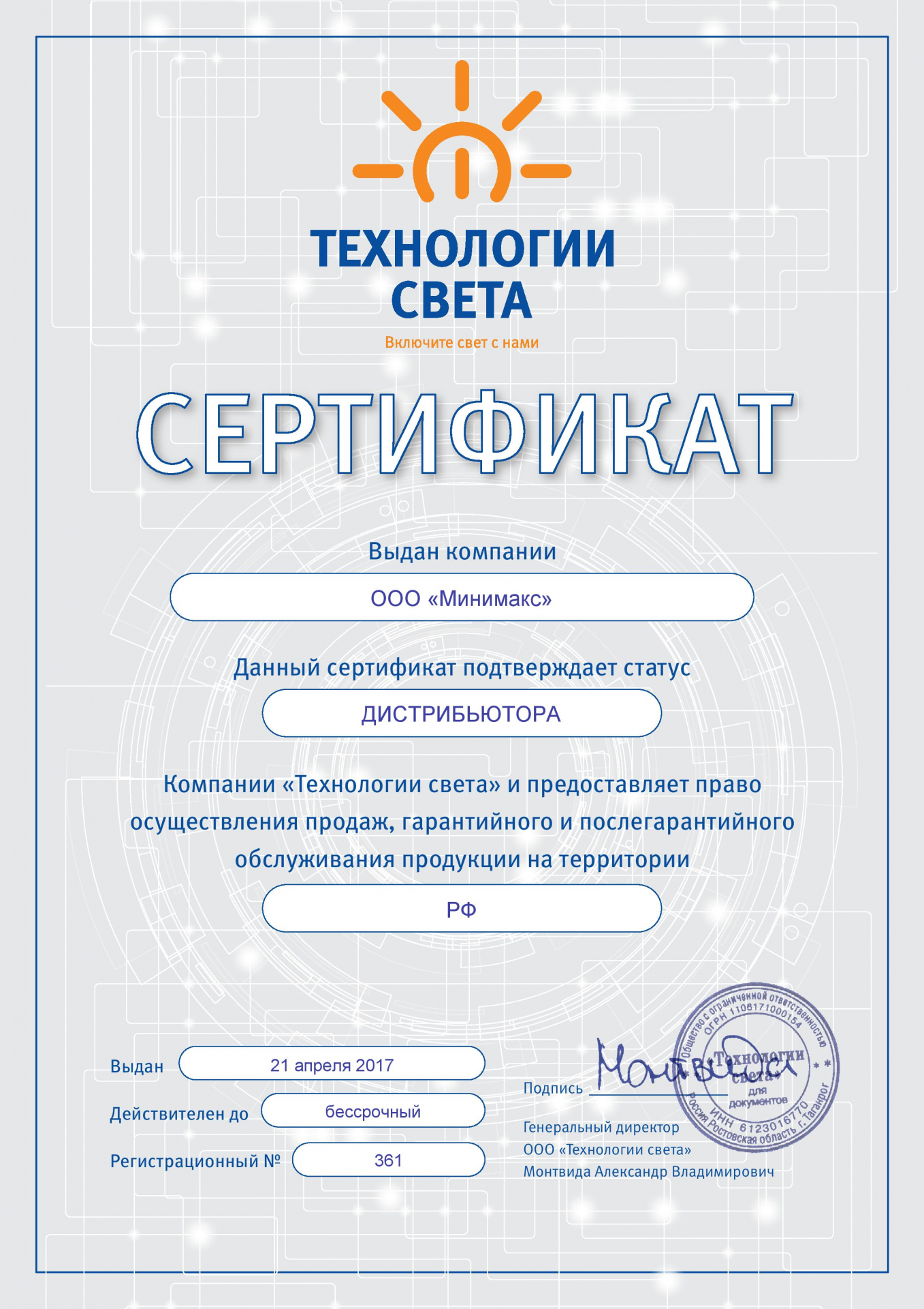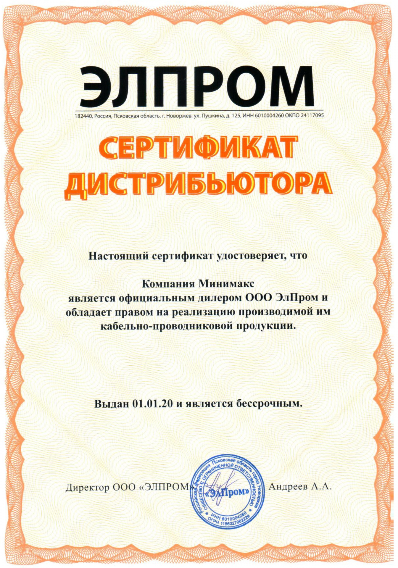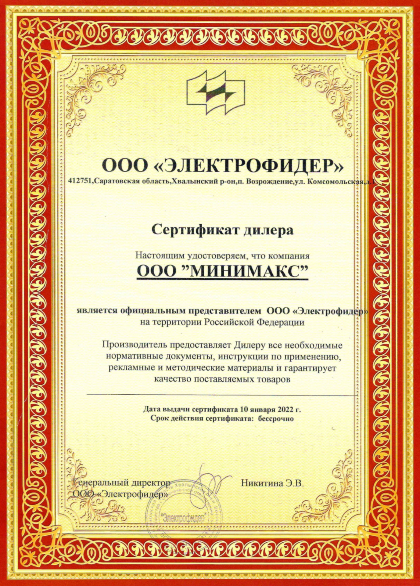Данный сертификат удостоверяет, что система менеджмента качества компании «Минимакс» соответствует требованиям ГОСТ Р. Компания осуществляет комплексные поставки электрооборудования для объектов строительства, жилищно-коммунального хозяйства, промышленных предприятий, сотрудничает с поставщиками из разных федеральных округов РФ и стран дальнего зарубежья. Соответствие РОСС ru подтверждает, что товар, ввезенный из стран дальнего зарубежья соответствует стандартам и нормативным документам РФ.