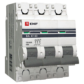 Выключатель автоматический 63А 3П трехполюсный характеристика C 4,5kA тип AC ВА47-63 PROxima mcb4763-3-63C-pro EKF